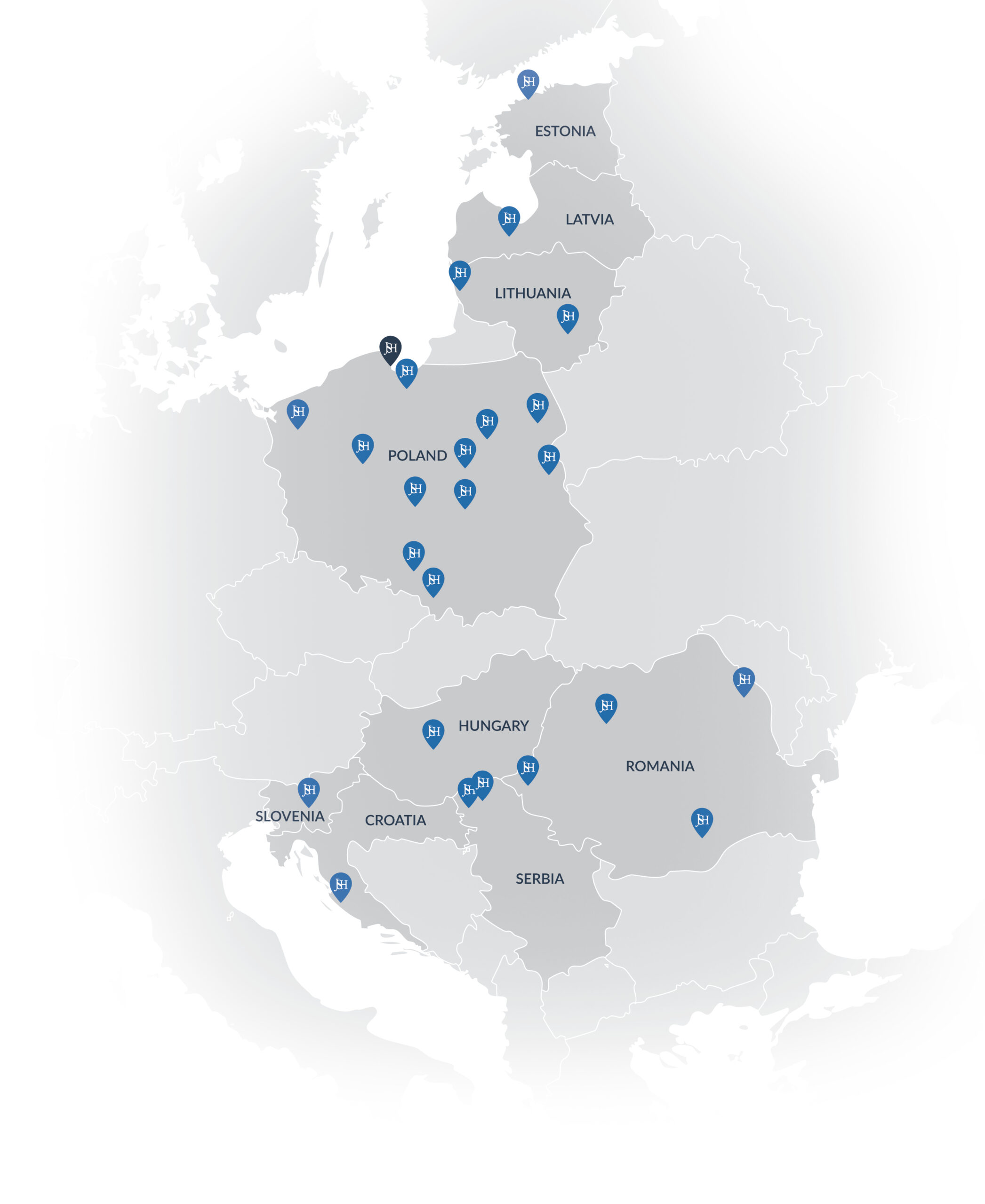 Wir sind auch in Litauen, Lettland, Ungarn, Rumänien, Slowenien, Kroatien und Serbien vertreten.
